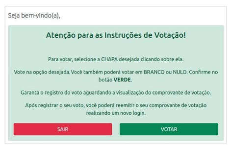 Leia com atenção as instruções e, se estiver no período da eleição, clique no botão VOTAR.